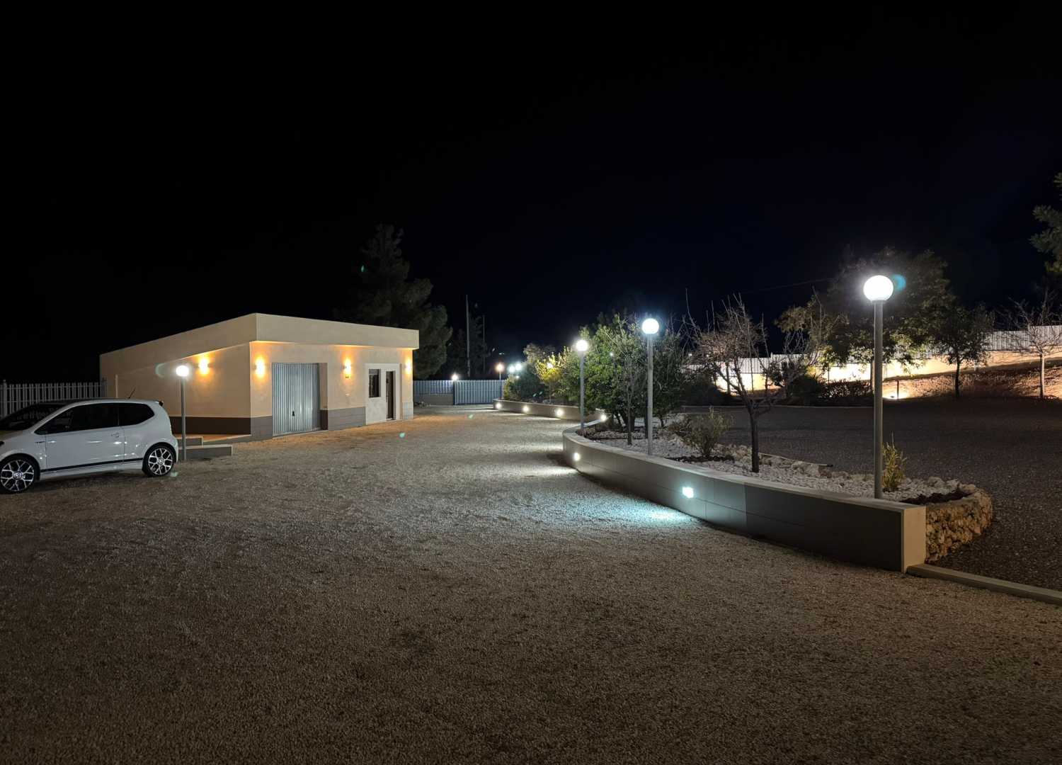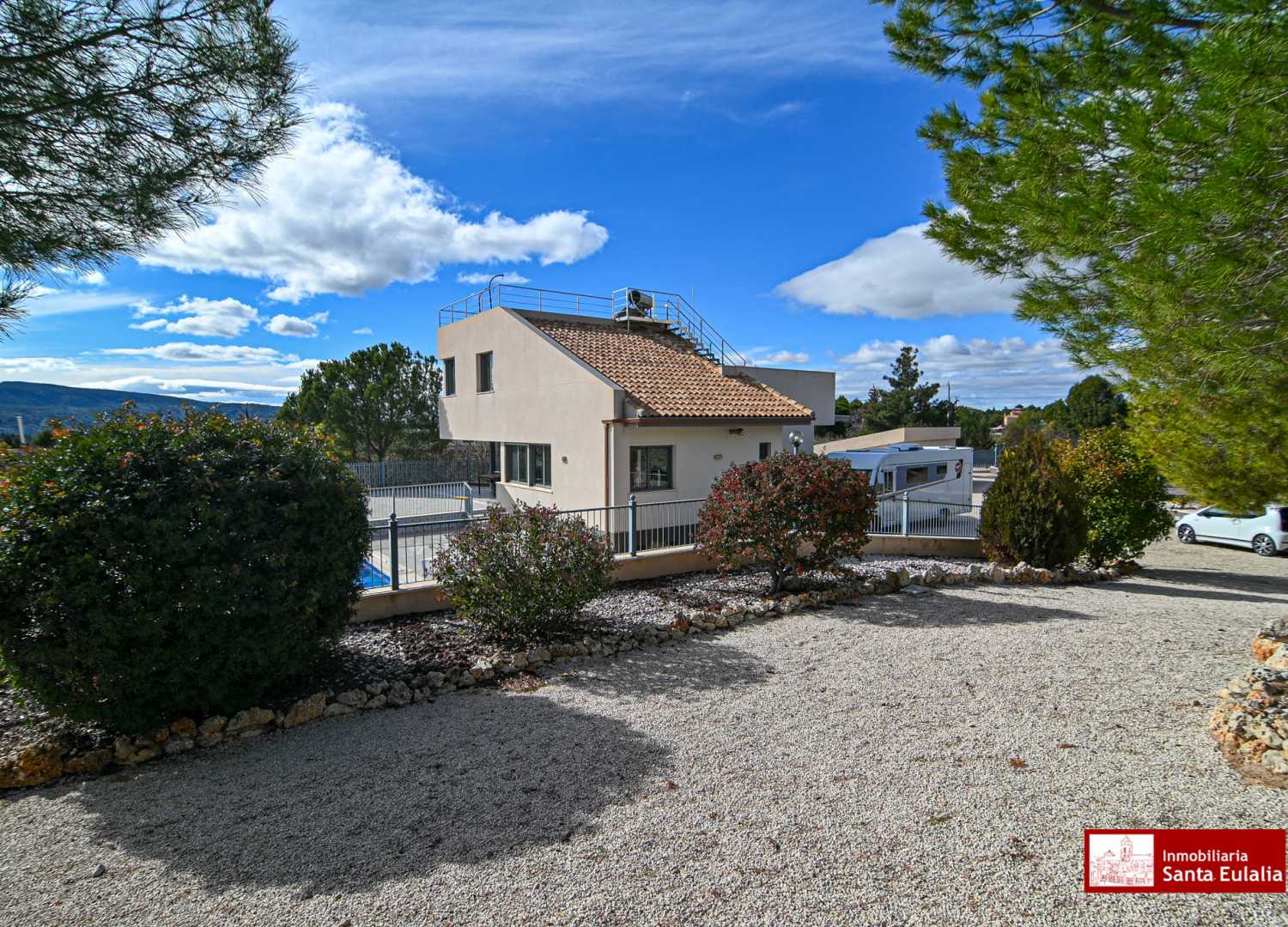 La propiedad se asienta sobre una parcela de 5.200 m², completamente vallada, con 800 m² de jardines cuidadosamente diseñados. En el exterior destaca una piscina privada de 4 x 8 m, perfecta para disfrutar del clima mediterráneo y del entorno natural que rodea la vivienda.