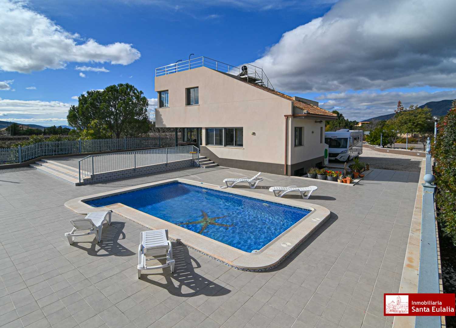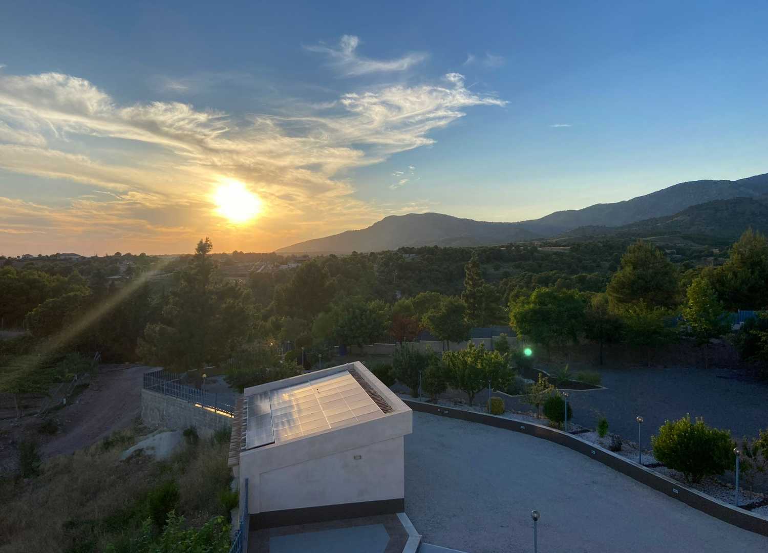 Uno de los grandes atractivos de esta villa son sus impresionantes vistas panorámicas 360º, con paisajes abiertos tanto de la Sierra Espuña como del pueblo de Aledo, visibles desde distintos puntos de la vivienda. El acceso por camino asfaltado asegura comodidad y fácil llegada durante todo el año.
