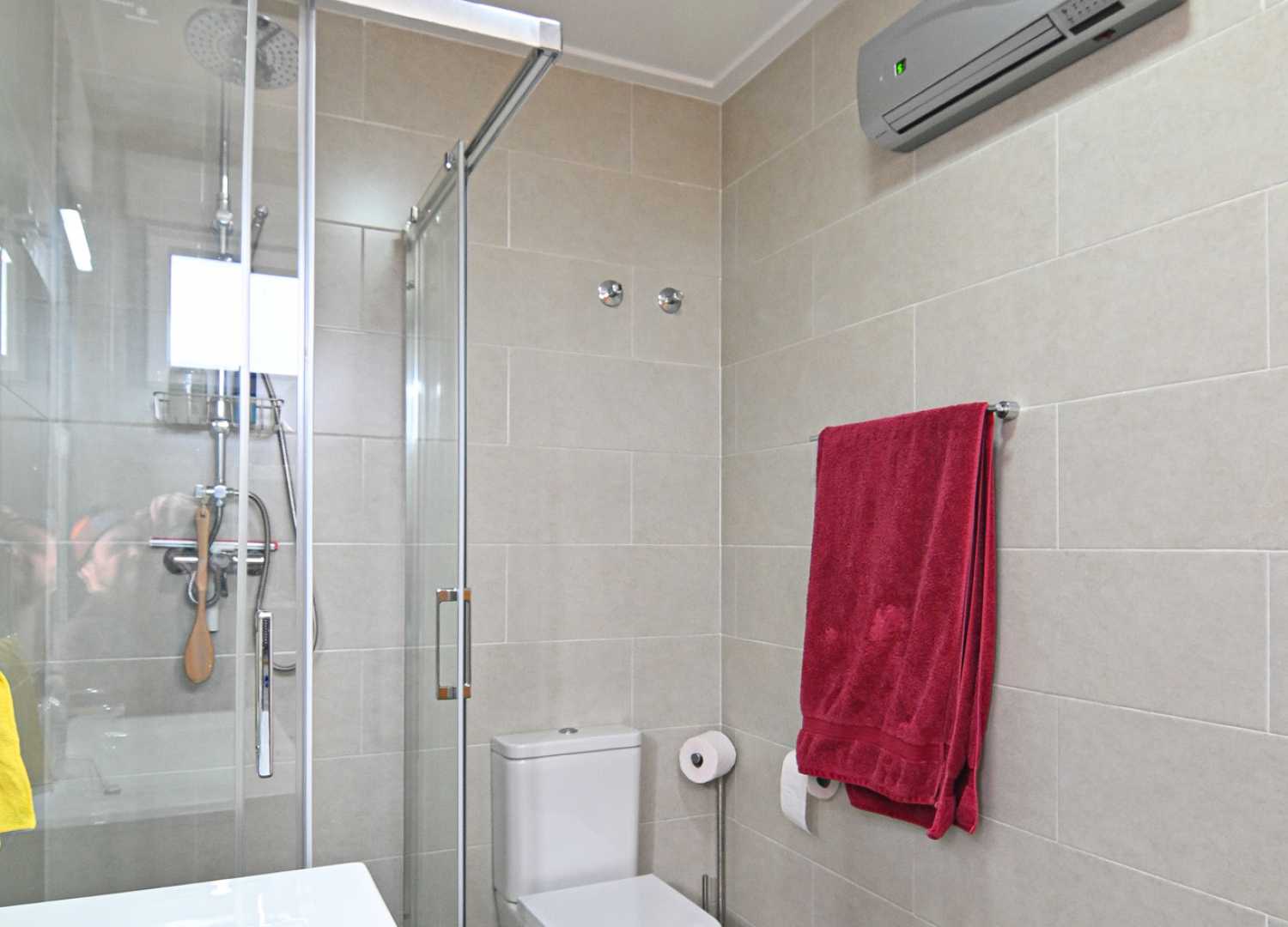 En cuanto a eficiencia y comodidad, la villa dispone de paneles solares de 9,9 kW y calentador de agua solar, además de aire acondicionado con bomba de calor en cada planta, garantizando bienestar durante todo el año y un importante ahorro energético.